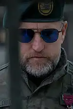 - Полковник (Woody Harrelson) — главный антагонист-человек, жестокий и решительный военачальник, ведущий охоту на обезьян.